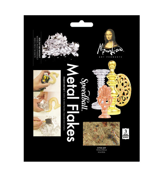 Consisting of small pieces of Mona Lisa Metal Leaf in varying shapes and sizes, Mona Lisa Metal Flakes are ideal for use on textured surfaces: paper, ceramic, metal, decoupage, stencilling, plastic, wood and glass. Create beautiful, eye-popping results! Contains 3 g of variegated gold flakes.