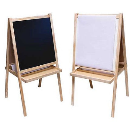 Pinte, coloree, dibuje y cree con este caballete de doble cara que incluye una pizarra y una pizarra de borrado en seco. Las bandejas grandes en cada lado contienen muchos suministros y actúan como un estabilizador, evitando que las patas se muevan o colapsen. El rollo de papel de 18" x 20 pies incluido se alimenta a través de la parte superior y se puede colocar en la ranura debajo de la pizarra blanca para mantener el papel fuera del camino, pero siempre al alcance. Requiere ensamblaje liviano. Mide 22" de ancho x 43" de alto 19.5"d y pesa 12 lbs. Rollos de papel de reemplazo de 18" x 100 yardas (AA13326) disponibles.