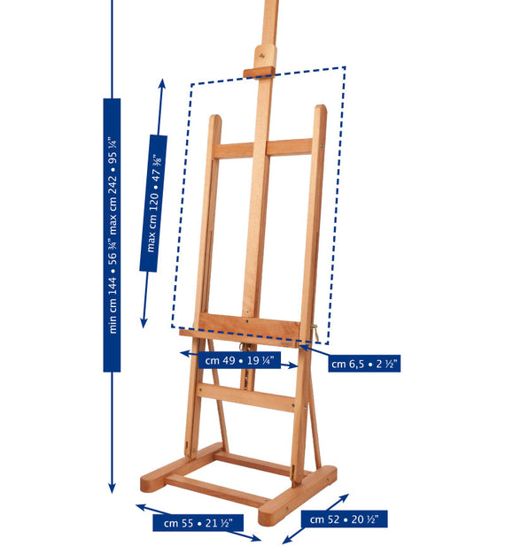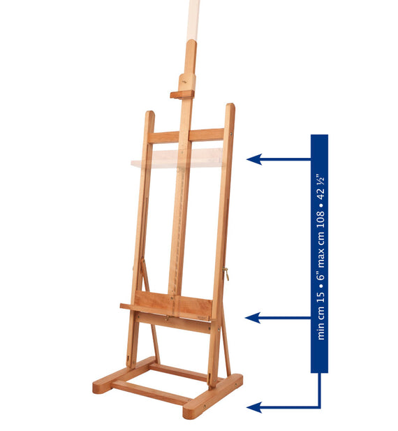 • La altura del soporte del lienzo se ajusta mediante un trinquete