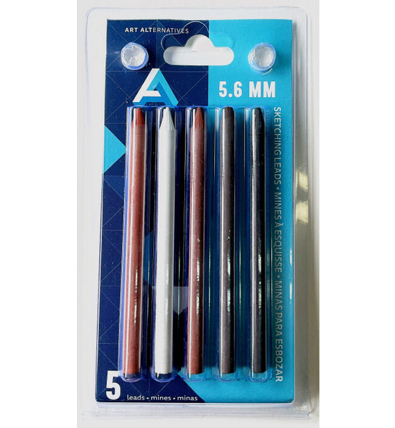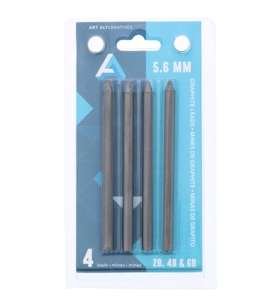 Juegos de minas de 5,6 mm para usar con el lápiz de mano Art Alternatives u otros soportes de minas de 5,6 mm. El juego de grafito contiene cuatro cables de grafito, dos de grado 2B y uno de grado 4B y uno de grado 6B.
