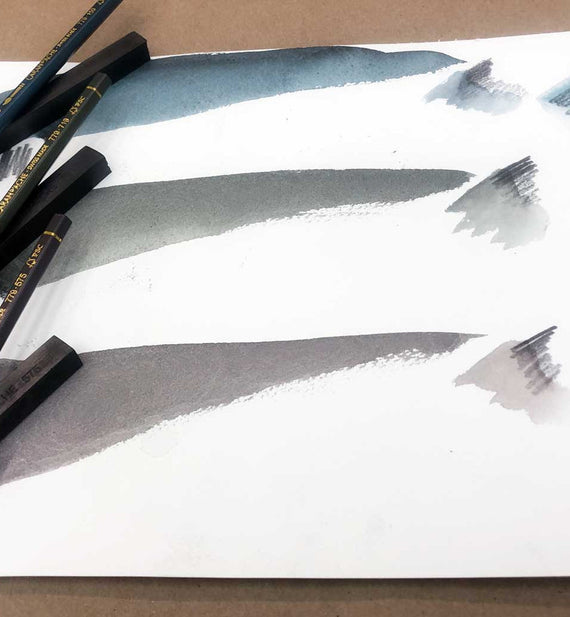 Estos son geniales para añadir sombra y luz a tus bocetos, ya que el grafito se mezcla muy fácilmente tanto en seco como con agua. Llamado así por el famoso sistema de codificación rojo, verde y azul, las varillas de grafito de colores solubles en agua RGB son perfectas para crear lavados delicados en superficies grandes. Aplicados en seco, conservan las propiedades originales del grafito: sus tonos sutiles se revelan solo cuando entran en contacto con el agua.
