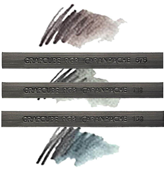 Con su sensación particular y múltiples tonos de gris, los grafcubes de grafito en bruto de Caran D'Ache están hechos de un material homogéneo para lograr líneas gruesas y delgadas, gradación, lavado plano, desenfoque o incluso efectos de acuarela. Todos los tonos y sus diversas gradaciones han sido cuidadosamente desarrollados y perfeccionados en los talleres de Ginebra de Caran D'Ache.