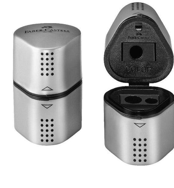 ¡Estos sacapuntas de cajas multiusos son tres sacapuntas en uno! La caja con bisagras se abre para revelar un sacapuntas para lápices de color que produce un punto contundente, un segundo sacapuntas para lápices de grafito que produce un punto fino para un dibujo detallado y un tercer sacapuntas jumbo para lápices de gran tamaño, lápices sin madera y lápices de colores de artista.