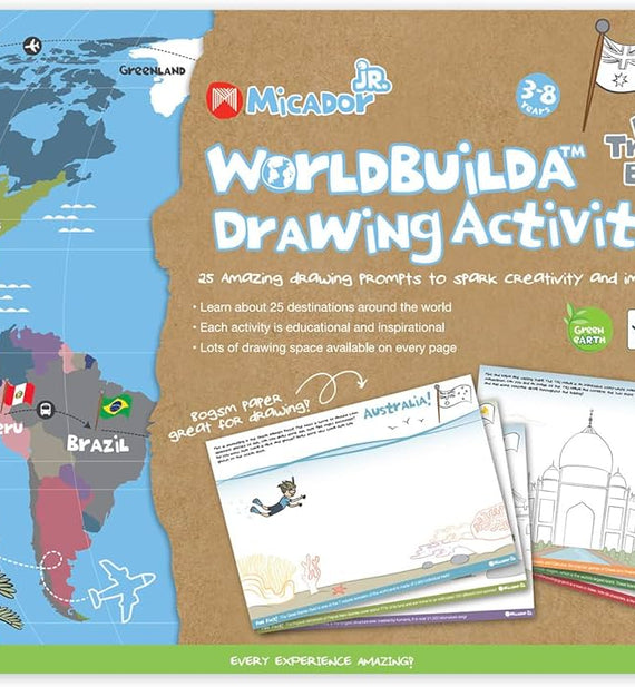 Un bloc de dibujo A4 con 25 increíbles indicaciones de dibujo para estimular la creatividad y la imaginación.