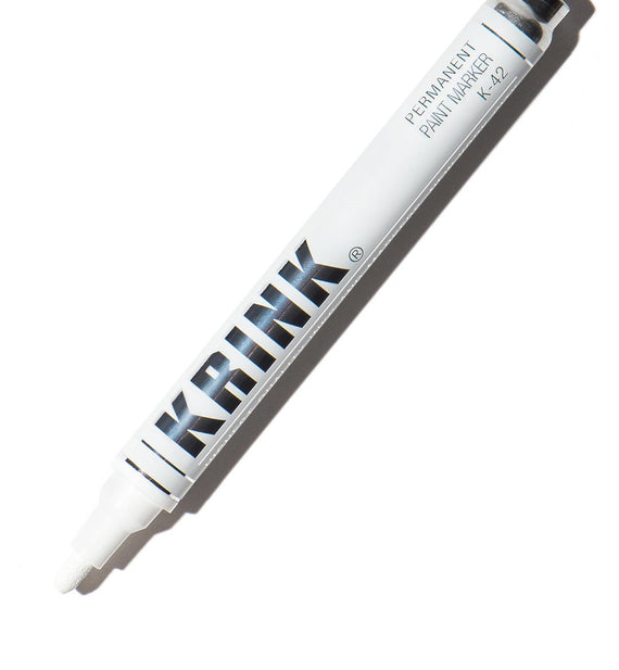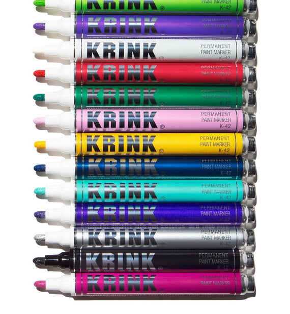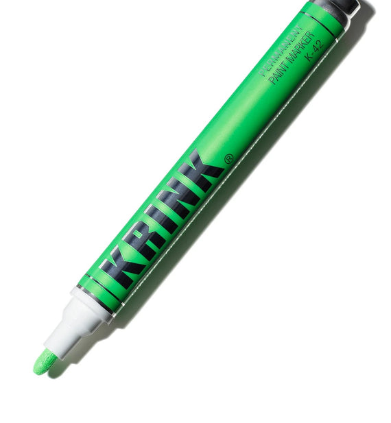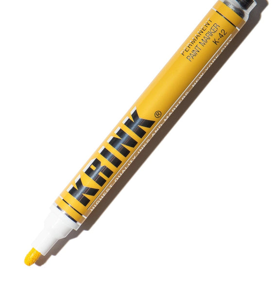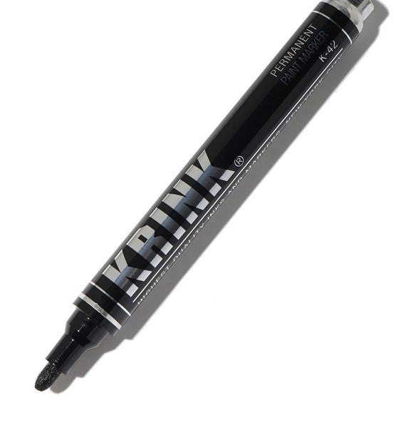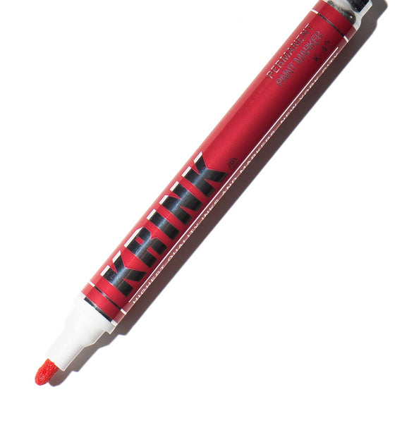 Los colores vibrantes y opacos del marcador de pintura K-42 son permanentes, resistentes a la decoloración y al agua y fáciles de usar. El marcador presenta una punta ancha con acción de válvula para que el artista pueda aplicar una gran cantidad de color mientras regula estrictamente el flujo de pintura. La pintura tiene una base de alcohol, no contiene disolventes nocivos, no contiene xileno y cumple con la norma ASTM D-4236. Cada marcador contiene 10 ml de pintura. Hecho a mano en USA.