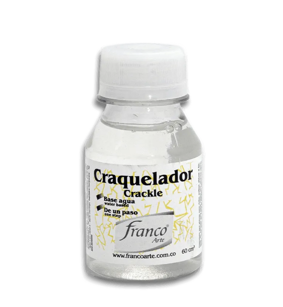 El CRAQUELADOR FRANCO ARTE craquela pinturas a base de agua como vinilos, acrílicos, pinturas acrílicas, entre otros. Puede aplicarse sobre pared, madera, MDF, cerámica, cartón, piedra, metal, vidrio, entre otros. Forma de aplicación: aplique una capa de pintura de fondo y deje secar, luego aplique craquelador sobre la capa de pintura anterior dejándolo secar aproximadamente de 10 a 15 minutos, luego aplicar una capa de pintura diferente al color del fondo para obtener el acabado deseado. NO TÓXICO.