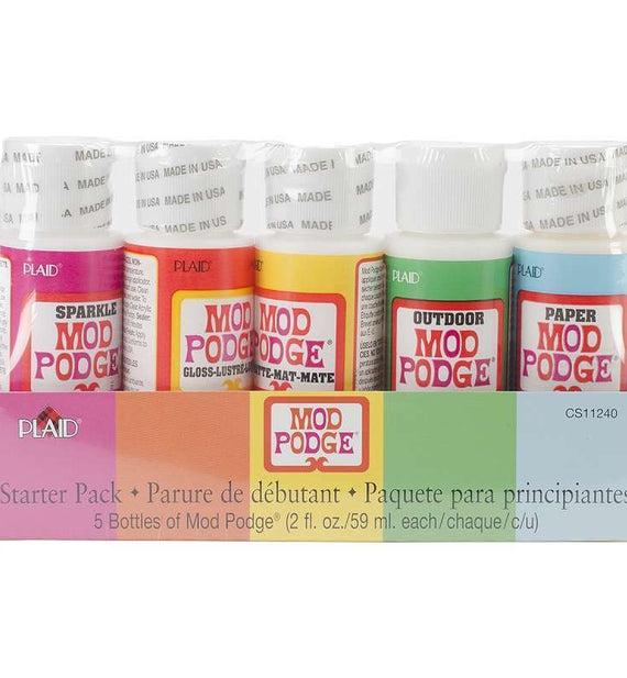 ¡Una maravillosa colección de selladores, pegamentos y acabados a base de agua para darle a cada proyecto un aspecto único y divertido! Este paquete contiene cinco botellas de 2 oz de mod podge para cinco propósitos diferentes.
