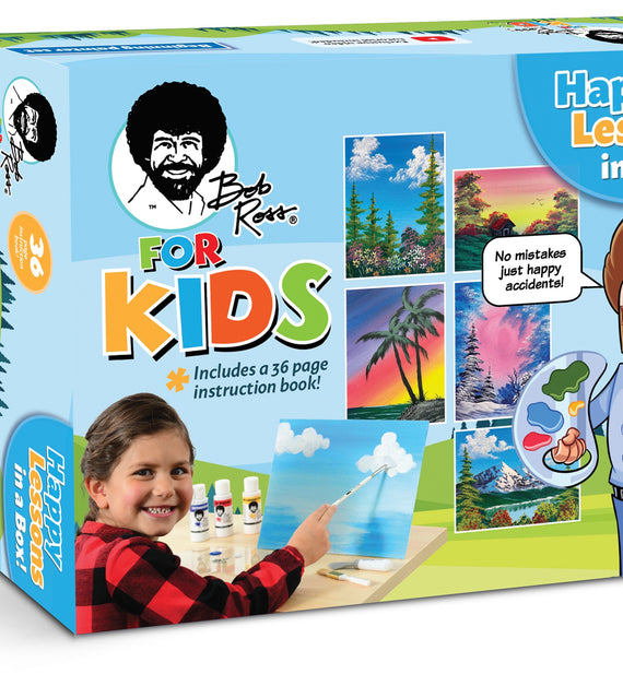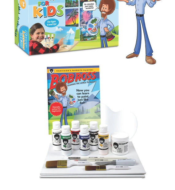 Felices lecciones en una caja! El maestro favorito de la televisión ha estado inspirando la creatividad individual y la expresión artística desde la década de 1980. Ahora los niños pueden disfrutar de una técnica de pintura real, pero simple, usando herramientas y colores diseñados solo para ellos. Usando las herramientas de Bob y siguiendo estos sencillos pasos y técnicas, los niños aprenderán las habilidades que necesitan para crear su propia obra maestra. Este kit incluye seis 2 oz. pinturas a base de agua, una de 4 oz. medio líquido a base de agua, cuatro pinceles (paisaje, fondo, abanico y delineador), un cuchillo de plástico, una paleta de plástico transparente de 6" x 9", tres tableros de lienzo de 9" x 12" y un folleto de instrucciones de 36 páginas para completar cinco diferentes pinturas ¡El folleto de instrucciones también funciona como un cómic e incluye juegos, rompecabezas y un certificado de finalización que se puede enmarcar! Recomendado para mayores de 6 años.