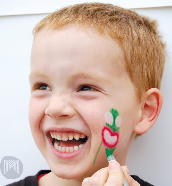 Los niños pueden colorear sus caras de forma segura, ¡con la facilidad de usar un crayón normal!