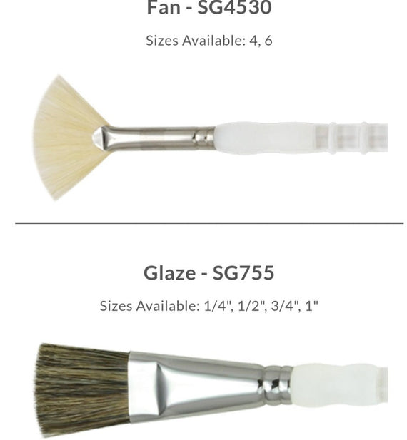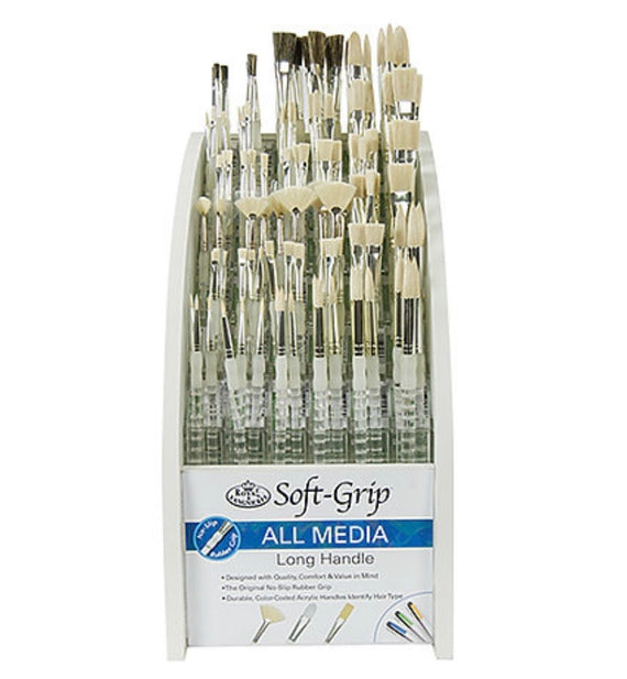 La forma se une a la función en esta selección de brochas atractivas y duraderas que cuentan con el agarre de goma suave antideslizante original en su mango de acrílico transparente.