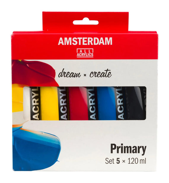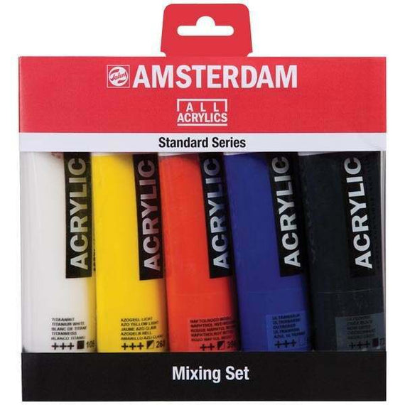 Este conjunto le proporciona los colores perfectos para comenzar su colección de pintura acrílica con: blanco titanio, negro óxido y los tres colores de mezcla primarios: amarillo primario, magenta primario y cian primario. Mezcla estos colores para crear una gama infinita de tonos diferentes.