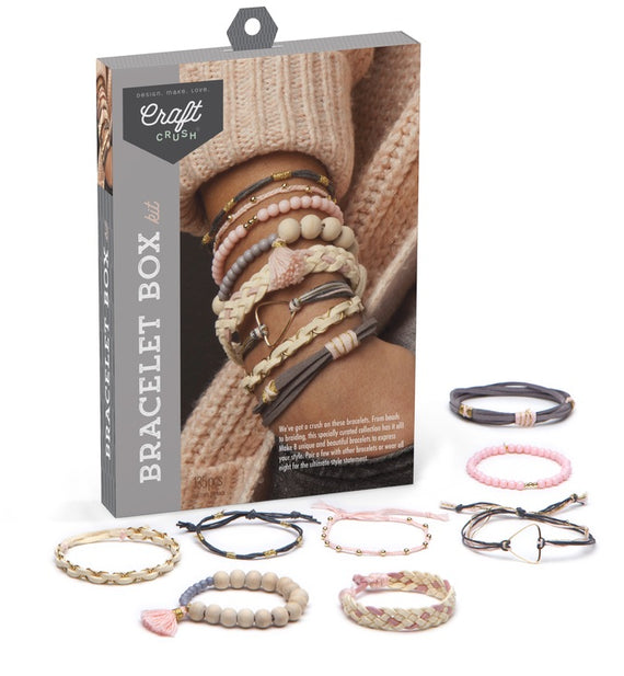 Crea una variedad de looks para usar con estas pulseras. Sencillo de hacer, impresionante de llevar. Este kit hace 8 pulseras con diferentes técnicas. El kit incluye 80 cuentas de plástico, 20 cuentas de madera, 4,2 yardas. (3,86 m) de cordón de gamuza sintética, 24" (0,6 m) de cordón elástico, 5 yds. (4,57 m) de hilo de poliéster, 7 yds. (6,4 m) de hilo de algodón, 3 yds. (2,7 m) de hilo encerado cordón, 25 anillos de metal, un triángulo de alambre, un enhebrador de alambre e instrucciones Recomendado para mayores de 13 años.