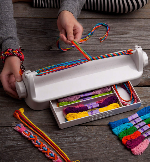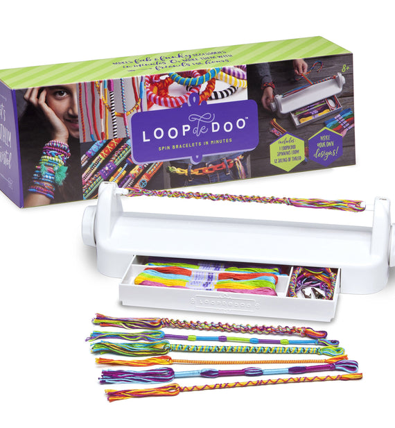Hacer los mejores accesorios en minutos es fácil y divertido. El telar giratorio de Loopdedoo te permite crear diseños tomando hilo de bordar y luego girándolo en accesorios mágicos. Los Loopdies que hagas serán lindos y coloridos, pero puedes mejorarlos agregando tus propias cuentas, pompones, borlas o dijes.*