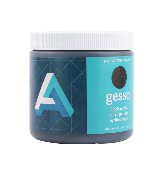 Save your black paint and make a stunning background with this opaque black primer! Art Alternatives Black Gesso provides a sufficiently rigid yet pliable surface with a clean black satin finish. It has a slight tooth to aid adhesion, dries quickly and will not crack. No prior sizing necessary. It is ideal for use with acrylics, oils or tempera, on a variety of porous surfaces including canvas, wood panels and paper. It also makes a great base for colored pencil, soft and oil pastels, crayon, paint markers, spray paint and more.