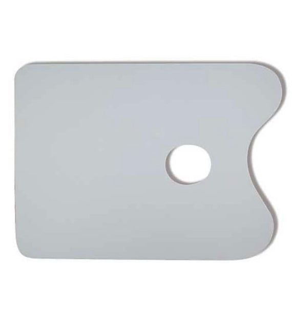 Estas paletas básicas de artistas están hechas de masonita dura y rígida recubierta con una superficie de melamina blanca duradera en un lado. La paleta rectangular se puede usar con la mano derecha o con la izquierda, mientras que las paletas ovaladas de forma tradicional están diseñadas para la mano izquierda.