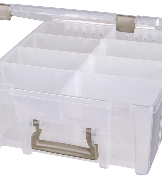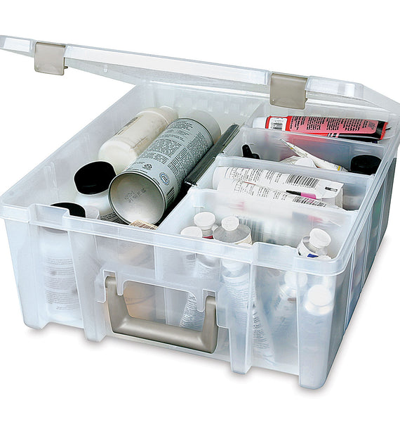 Made of acid-free, translucent polypropylene, this sturdy, portable tote is extra deep for storage of larger jars, cans, and supplies. Use it without dividers, or customize it with up to six compartments using the included translucent dividers. Buy more than one — the Super Satchel was designed for stacking!