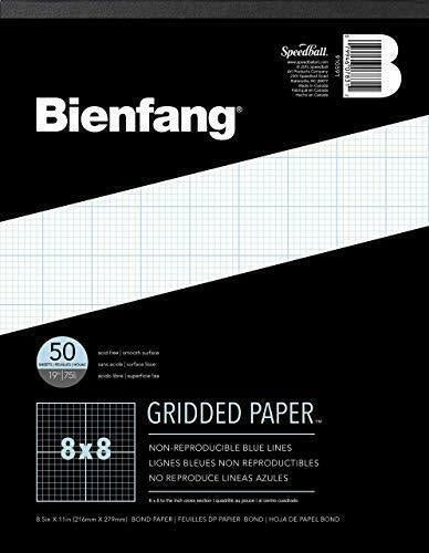 Bloc de papel cuadriculado Bienfang. Perfecto para una variedad de usos comerciales, este bloc de papel presenta líneas azules no reproducibles y tiene una sección transversal de 8x8 por pulgada. Este paquete contiene un bloc de papel de 8-1/2x11 pulgadas con cincuenta hojas de papel bond cuadriculado.