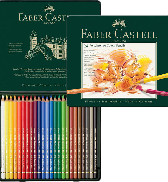 Estos conjuntos incluyen una variedad de lápices de colores que contienen pigmentos de la más alta calidad para una solidez a la luz insuperable. Cuentan con una decoloración suave como la mantequilla y se mezclan fácilmente y se colocan en capas sin acumulación de cera.