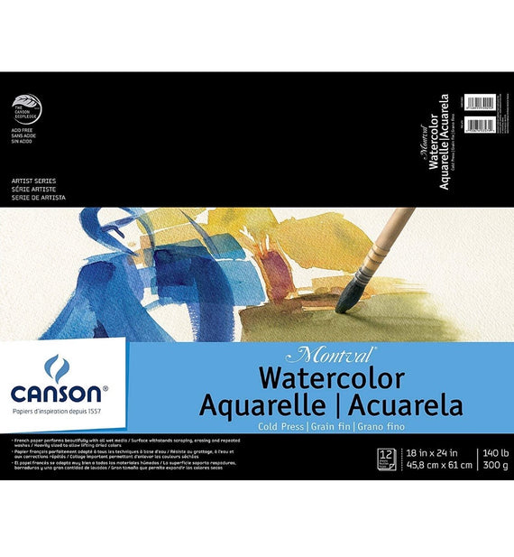 Las almohadillas acuarelas Canson Montval tienen papel francés que se comporta maravillosamente con todos los medios húmedos. La superficie soporta raspado, borrado y lavados repetidos. Estas almohadillas moldeadas contienen 12 hojas de papel 18X24 libre de ácido de 140 lb / 300 g.