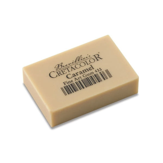 Una goma de borrar es una parte esencial de cada estudio de arte. La textura suave es ideal para borrar y mezclar carboncillo, pastel y grafito, y las piezas usadas que se desmenuzan se pegan naturalmente para quitarlas fácilmente de la página. Este borrador de goma de alta calidad de Cretacolor se llama "Caramel" debido a su familiar color bronceado.