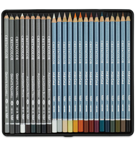 Perfectos para cualquier acuarelista o dibujante, los lápices de acuarela Marino de Cretacolor cuentan con un conjunto de impresionantes colores vibrantes con resistencia a la luz superior y una textura suave y cremosa. ¡Cree hermosos paisajes, retratos y escenas submarinas utilizando técnicas de dibujo simples y agregando agua para disolver los pigmentos en acuarelas fluidas!