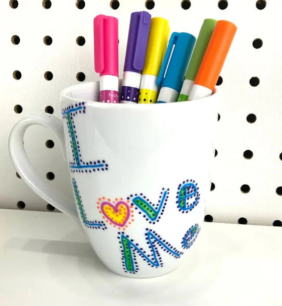 ¡La pintura de vidrio se ha hecho mucho más divertida y fácil con estos marcadores de pintura de vidrio opacos! Sabemos lo que es pintar diseños sobre vidrio. La pintura acrílica típica se desliza, a menudo es difícil pintar el nivel de detalle que desea, y a veces la pintura que está usando no se adhiere bien al vidrio y simplemente se borra. Es por eso que creamos estos marcadores de pintura de vidrio especialmente formulados. Están diseñados para adherirse específicamente a la superficie lisa del vidrio o la cerámica. Los colores son opacos y secos hasta un acabado satinado. ¡Ve y pinta algunas cristalerías personalizadas, jarrones y más!