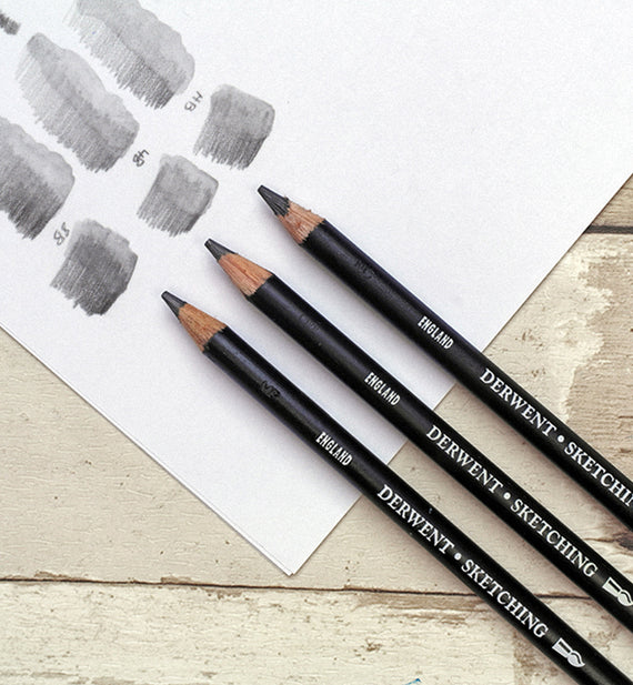 Derwent Graphite es un lápiz de grafito tradicional disponible en un rango completo de 20 grados, desde un fino y suave 9H hasta un suave y borroso 9B. Ideal para ilustraciones nítidas y detalladas o dibujos tonales, tiene un cilindro delgado hexagonal de 6,9 ​​mm de diámetro y una tira de grafito fácil de afilar. El ancho de la tira varía según el grado del lápiz. Tiene una tira de 2,2 mm para los grados más duros y una tira de 3,5 mm para los grados más suaves. Disponible en un rango de 20 grados de 9H a 9B. H significa "dureza", B para "negrura", F para "fina".
