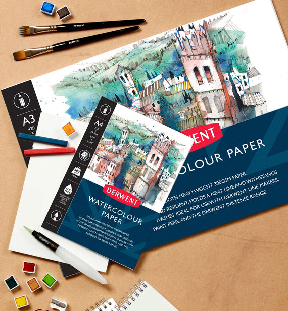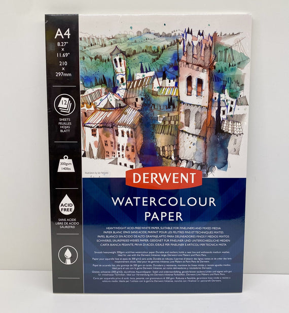 El papel pesado de 300gsm responde bien a los lavados, aunque se recomienda que el papel se estire antes de su uso si se va a cubrir un área particularmente grande o se utiliza un lavado pesado. Cada almohadilla contiene 12 hojas de papel de acuarela blanco sin ácido de 300 gsm.