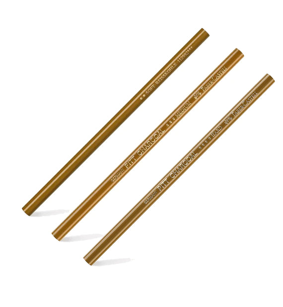 Los carbones comprimidos PITT ofrecen el trazo negro más profundo posible. Producidos a partir de una fina mezcla de holín y carbón vegetal, son especialmente adecuados para grandes áreas. Disponible en tres grados de dureza.
