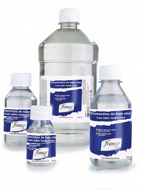 La TREMENTINA FRANCO ARTE se caracteriza especialmente por su bajo olor, formulada como diluyente de las pinturas al óleo disminuyendo el brillo si se usa en exceso, se utiliza también para la limpieza de los pinceles. Es un líquido transparente volátil e inflamable. Manejar con buena ventilación en las áreas de trabajo. Ideal para mezclar con colores metálicos y planos de óleo.