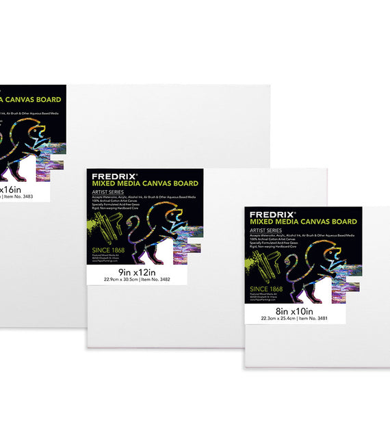 Mixed Media Archival Canvas Board es un lienzo de artista 100% algodón que combina la textura de un tejido natural con un gesso especialmente formulado diseñado para todas las pinturas a base de agua. No se rasgará como el papel y puede levantar ligeramente el pigmento o lavar completamente la superficie de la pintura sin dañar la superficie del lienzo. 7,7 oz. imprimado y 6 oz. sin imprimación, está doblemente cebado justo al norte de Atlanta, Georgia, con un yeso de titanio a base de fondo absorbente sin ácido para obtener resultados profesionales. Una opción versátil para acuarelas, barras de acuarela, acrílicos, tintas, marcadores de pintura, marcadores permanentes y pinturas en aerosol.
