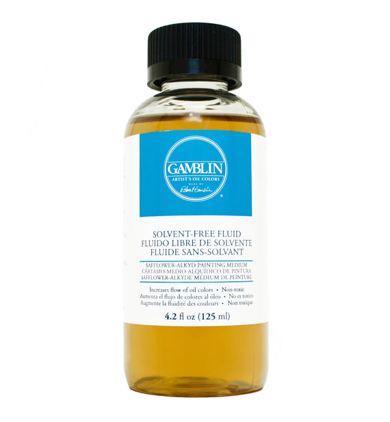 Medio de pintura fluido sin disolventes de Gamblin proporciona a los colores al óleo más fluidez y transparencia. Tiene una velocidad de secado moderadamente rápida y aumenta el brillo. Hecho de aceite de cártamo y resina alquídica, el líquido sin solventes Gamblin no es tóxico y no contiene Gamsol ni destilados de petróleo.