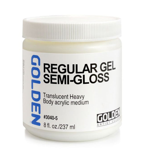 Regular Gel Semi-Gloss: la misma consistencia cremosa que los colores Golden Heavy Body Acrylic. Ideal para extender la pintura y regular la translucidez sin cambiar la consistencia. Mantiene picos y textura moderados y es perfecto para técnicas de empaste. Regular Gel Semi-Gloss da un brillo satinado translúcido a colores y capas.