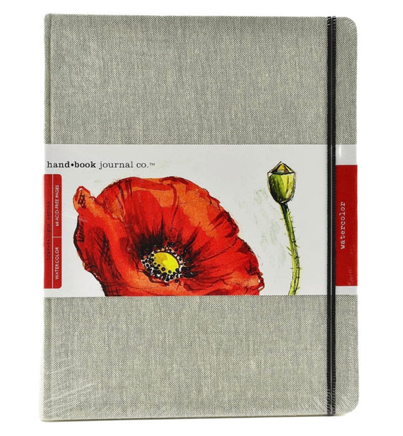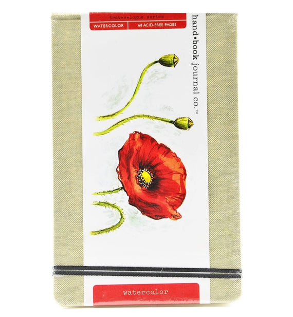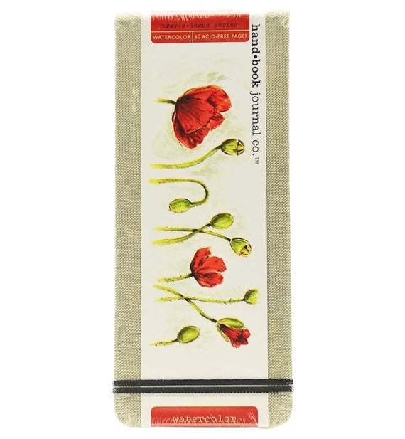 Bound in natural linen, Hand Book Travelogue Watercolor Journals offer watercolorists an attractive and practical option for painting on the go. Available in a variety of sizes, each journal holds 30 sheets of soft white, acid-free, 90 lb (200 gsm) watercolor paper with a pleasing cold press finish. They also feature rounded corners, an elastic closure, and a clear storage envelope on the inside back cover.