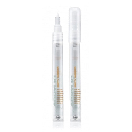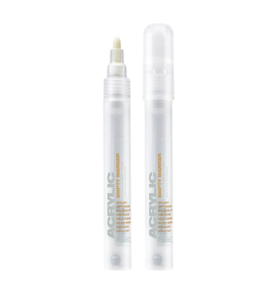 Estos marcadores Montana vacíos, recargables y de alta calidad tienen sistemas de válvula de bomba de control de flujo óptimos que permiten un manejo y una aplicación precisos. Los cuerpos transparentes del marcador permiten un fácil reconocimiento del color y una evaluación del contenido restante. Perfecto para usar con PINTURA ACRÍLICA a base de agua.