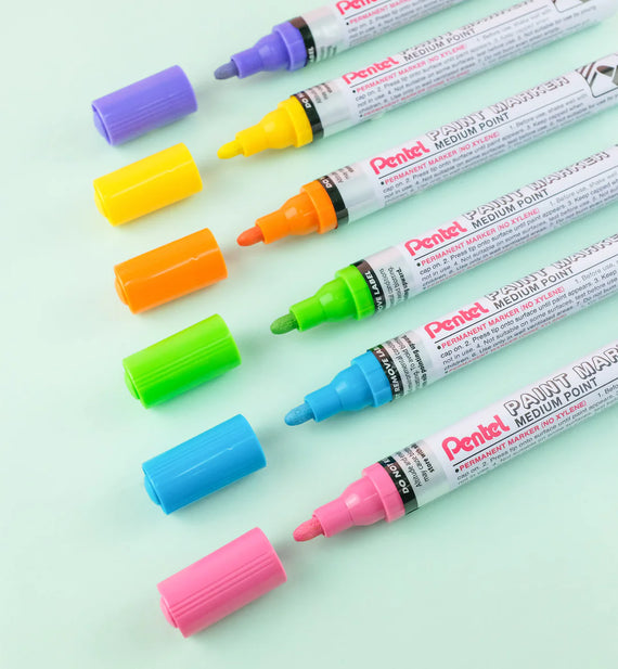 El marcador de pintura Pentel tiene cobertura total y escribe en todas las superficies. La pintura es permanente, a base de aceite, impermeable y realmente duradera.