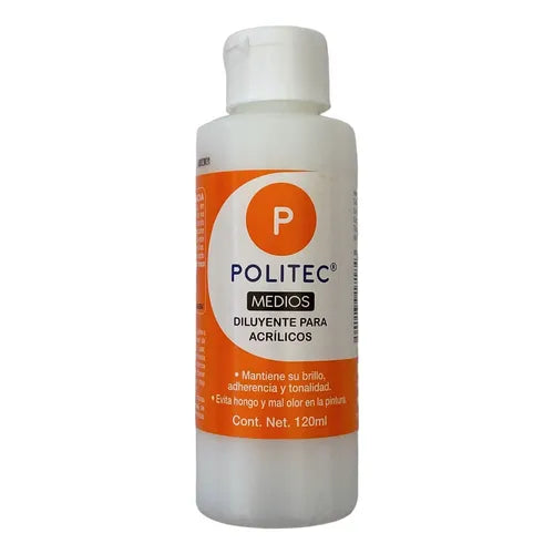 Mantiene el brillo, adherencia y tonalidad. Evita hongo y mal olor en la pintura. Modo de uso: Colocar en un recipiente o godete la cantidad de pintura acrílica a usar, aplica el diluyente hasta obtener la consistencia deseada, puede obtener pinturas acrílicas muy líquidas tipo tinta. Al rebajar las pinturas acrílicas con agua, se pierde brillo y adherencia. Capacidad: 120 ml.