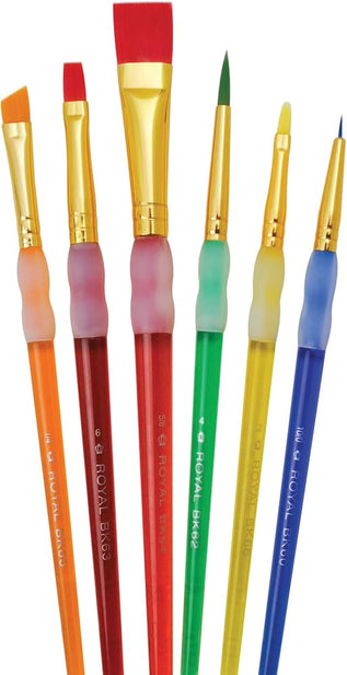 Los mangos más gruesos y cortos de color arcoíris están diseñados para manos pequeñas y cuentan con el agarre de goma antideslizante para mayor comodidad durante la pintura.