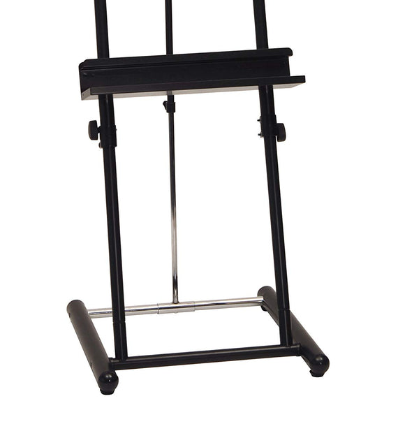 El caballete de lujo tiene capacidad para lienzos de hasta 72" de alto y 1,5" de grosor. Se puede utilizar con fines de trabajo práctico o como un atractivo caballete de exhibición. El caballete cuenta con un ajuste de inclinación telescópica que le permite cambiar el ángulo del mástil a su gusto. Una bandeja de almacenamiento incorporada es útil para mantener las herramientas a su alcance. Incluye niveladores de piso para mayor estabilidad en superficies irregulares.