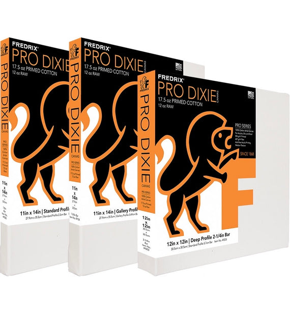 Con #123 Dixie Canvas, un lienzo de pato de 17,5 oz. imprimado, 12 oz. 100% algodón en bruto. El lienzo está doblemente imprimado justo al norte de Atlanta, Georgia, con un yeso de titanio acrílico sin ácido para obtener resultados profesionales. Estirado en barras de camilla secas al horno, procedentes de bosques regionales sostenibles. La serie PRO cuenta con barras más pesadas con restaste adicional para un mayor soporte. Una opción versátil para aceites, acrílicos, aceites solubles en agua, marcadores de pintura, marcadores permanentes, pinturas en aerosol y alquidos.