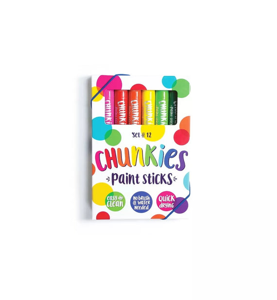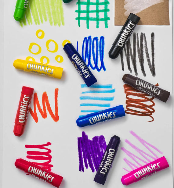 Súper fácil de usar, limpiar y llevar sobre la marcha, Chunkies se siente como si estuvieras pintando con un crayón. Solo destapa, gira y empieza a pintar. Los trozos están disponibles en juegos de barras de pintura de diferentes colores, cada uno en una gruesa carcasa de barril para que sean fáciles de sostener para las manos pequeñas. Los colores de la pintura se secan rápidamente y no se mancharán con colores fáciles de mezclar. Recomendado para mayores de 3 años.