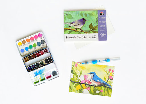 El kit Niji Essential Watercolor Essentials es perfecto para pintar acuarelas sobre la mara. Con un conjunto de acuarelas versátil y portátil; un bloc de papel de acuarela del tamaño de una postal; y un pincel de agua que siempre está listo para usar, este kit será su elección preferida tanto para la pintura al aire libre como para la pintura casera.